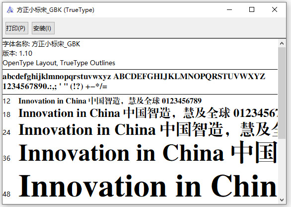 二、字体库安装到计算机系统中,任何桌面程序的字体栏菜单都可以调用并在屏幕显示。