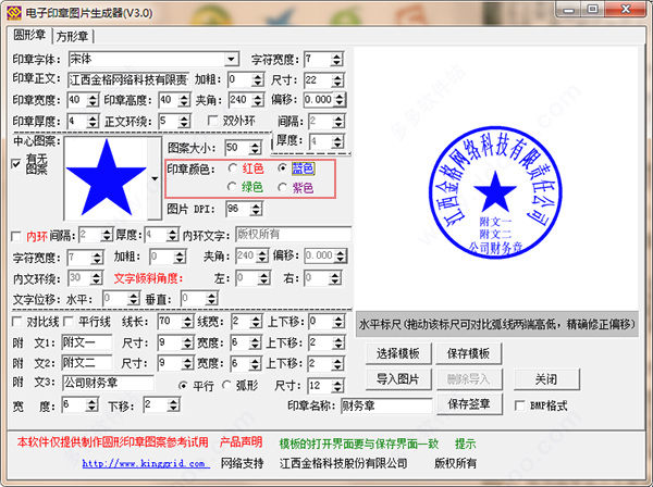 为用户提供了红色、蓝色、绿色以及紫色四种颜色供用户选择印章的设计