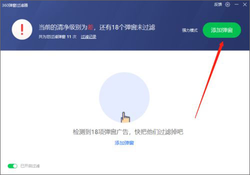 4、在弹窗过滤界面中,找到添加弹窗,并点击它。