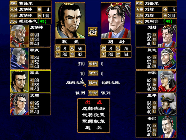 6、部队出征后,可以指挥作战,包括前军前进,左军前进,全军突击,武将出击等。