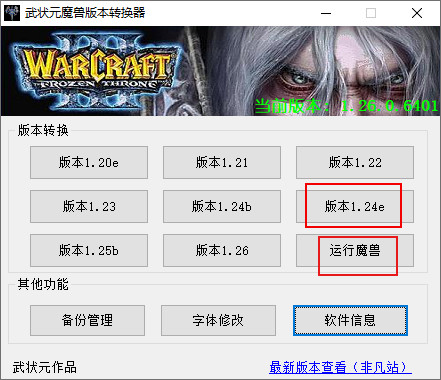 一、魔兽争霸3冰封王座1.24e版本转换说明: