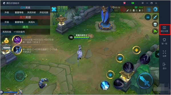 1、打开腾讯手游助手,进入王者荣耀游戏界面,用于对应技能位置进行按键位置调整,点击界面右边的“键位设置”进入设置