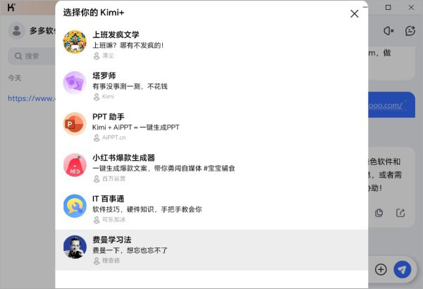 4、Kimi+是Kimi内置的智能体商店,用户可以通过在对话框中输入“@”符号,然后选择或输入特定的Kimi+模型名称来召出相应的助手。