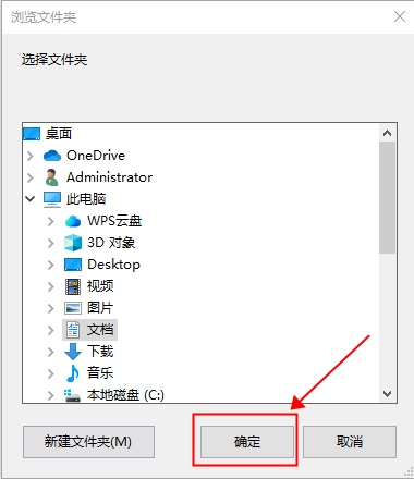 3、选择想要存放文件的位置,点击“确定”,这样就更改成功了。