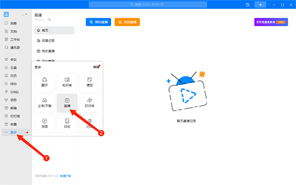 1、在左边任务栏点击【更多】选项,然后选择【直播】选项,