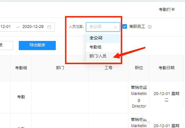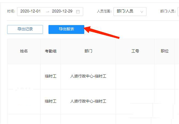 5、最后选择【导出报表】选项,就可以导出考勤打卡记录表了。