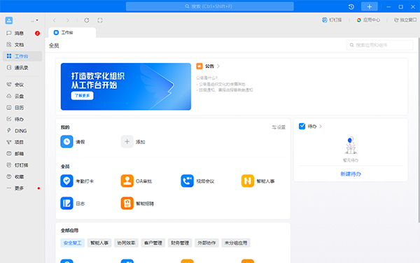 钉钉电脑版是阿里巴巴集团推出的专业级办公协同软件,集即时通讯、在线会议、文档协作、智能审批等功能于一体。作为国内领先的企业数字化办公平台,钉钉通过全方位的协同解决方案,帮助企业和组织提升工作效率,实现智能化办公转型。凭借其全面的功能体系和稳定的性能表现,已成为超过2000万企业组织的首选办公平台。无论是中小型企业日常协作,还是大型组织的数字化管理,钉钉都能提供专业可靠的解决方案,重新定义现代工作方式。