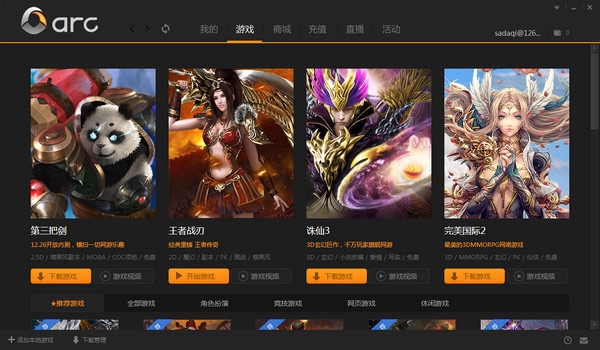 点击Arc客户端上方导航栏的”游戏”,进入到Arc游戏大厅,选择你所喜爱的游戏!