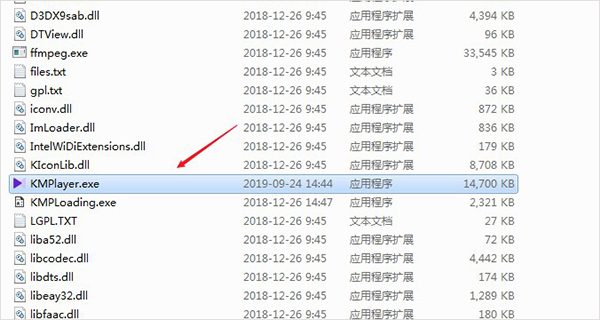 1、在本站下载解压,在根目录下找到“KMPlayer.exe”,由于软件是免安装版,点击直接使用;