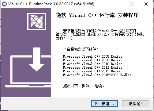 微软Visual C++运行库合集包是由微软提供的系统组件集合,包含1993-2022年间发布的各版本Visual C++ Redistributable运行库文件。作为Windows系统的重要基础组件,它为基于Visual C++开发的应用程序提供必要的运行时环境支持,确保各类软件能够正常运行。微软Visual C++运行库合集包是计算机维护人员和普通用户的必备工具,其集成的完整运行库可避免用户手动逐个安装的麻烦,有效解决因运行库缺失导致的程序无法启动问题,显著提升软件兼容性和系统稳定性。