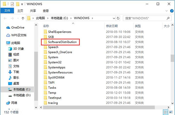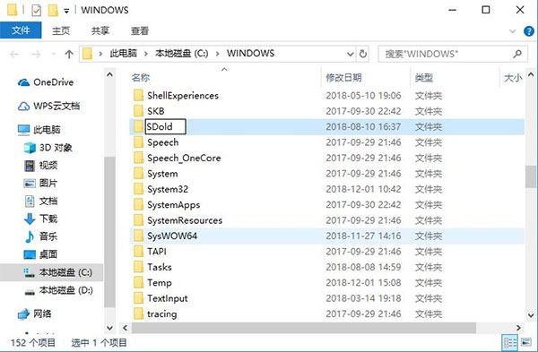 3、之后会打开一个新窗口,在此文件夹中找到名为“SoftwareDistribution”的文件夹,然后直接将此文件夹改名为“SDold”并确定。