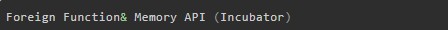 注:Java程序可以通过该API与Java运行时之外的代码和数据进行互操作。通过有效调用外部函数(即JVM之外的代码),以及安全地访问外部内存(即不由JVM管理的内存),API使Java程序能够调用本地库和处理本地数据,而没有JNI。