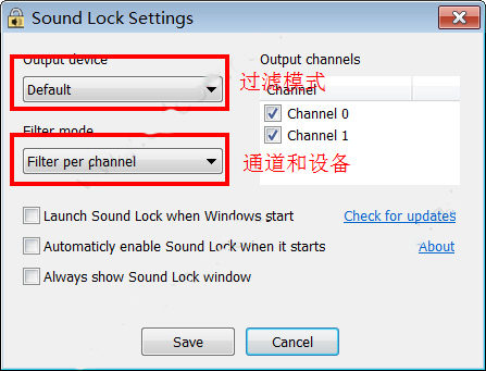 使用声音锁定功能时,您可以单独设置和使用每个通道的音量限制,或者过滤主通道,该通道使用所有通道之间设置的最高限制。