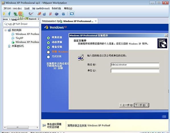 11、输入姓名,单位继续安装,不得设置administrator为姓名;