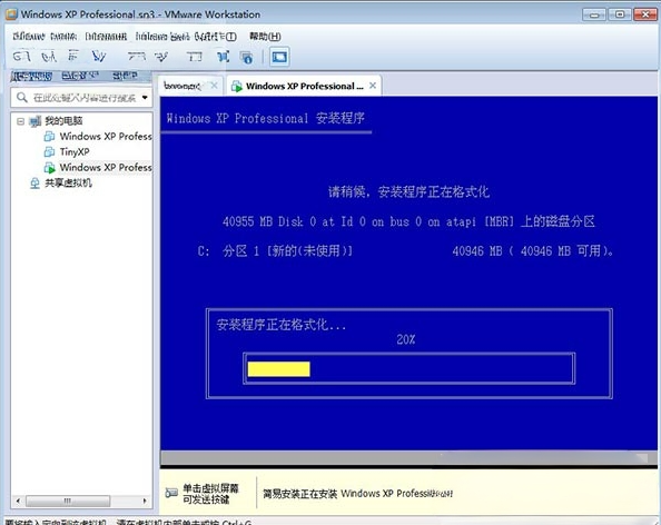 8、点击完成后,winxp系统将自动格式化磁盘以及自动复制系统文件安装;