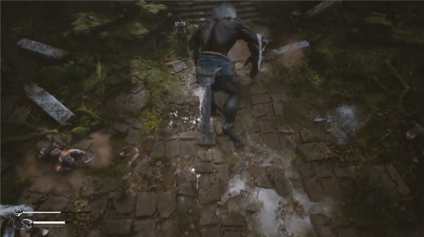 4、其次是防御模式,演示中它可以挡掉远程的箭矢攻击并缓慢前进,最后以一下挥击做为收尾,是一种偏向防守反击的体态。