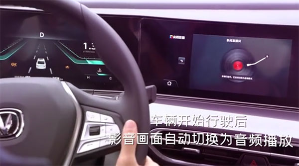 1、它在车辆开始行驶后,将画面自动切换为音频,人开着车,精彩的电视剧作为BGM播放,真正实现驾驶、追剧两不误。没有画面,驾驶者就不会去看屏幕,这样就避免了开车时被精彩的内容吸引,而发生因视线转移所导致的安全问题,