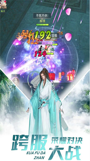 3、跨服荣耀之战:百人同屏PVP,争夺门派至尊,成就武林霸主。