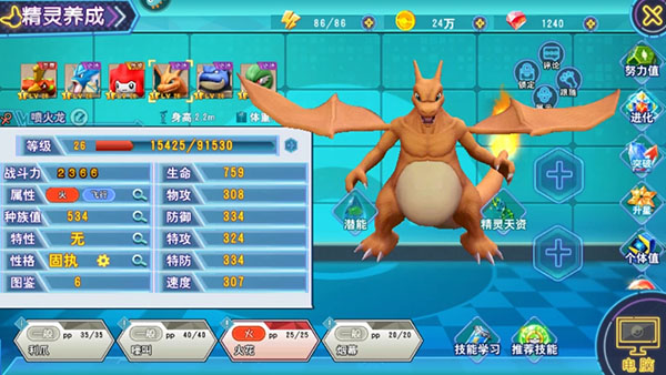 喷火龙的战斗技巧,可以良好的削弱敌人的同时,保证自身的高输出能力,以此达到快速赢得胜利的效果。如果遇上了克制自己的敌人,在受到攻击时会承受大量的伤害,此时就可以多多使用“烟幕”技能,该技能可以降低敌人的命中率,提升喷火龙的躲避几率。