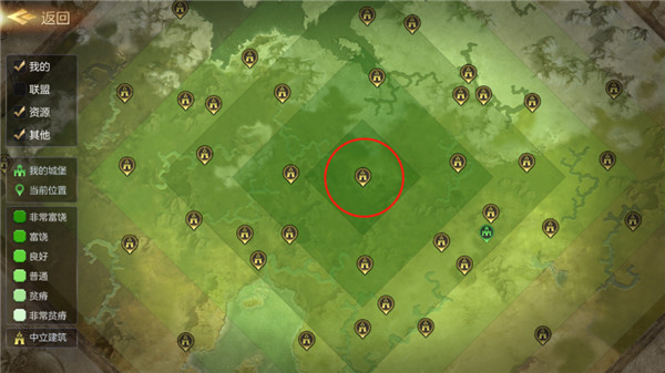 王权之眼作为游戏的核心,其周围的资源是最为丰富的,六级资源田随处可见,所以很多休闲盟会都会选择这里落脚。