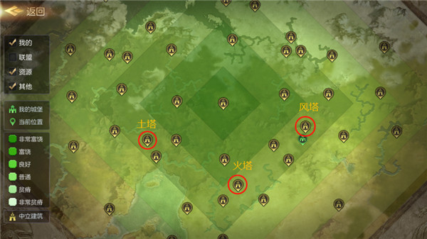 这三座塔的选择都差不多,选择其中一座,然后向其他两座扩张,其中必定会与其他盟会冲突,所以建议有实力的盟会才选择这几座塔作为盟会的落脚点。