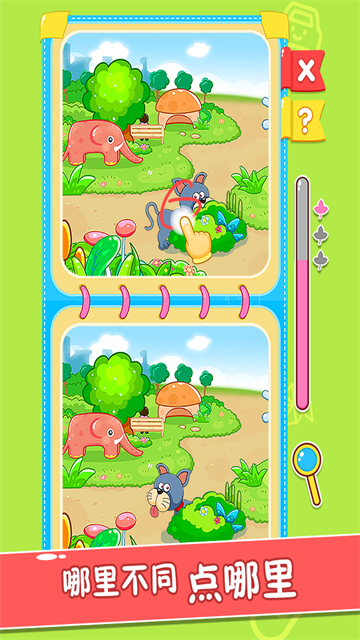 操作极其简单: 宝宝只需用手指直接点击两幅图片中不同的地方即可,无需任何复杂教学,上手零门槛。