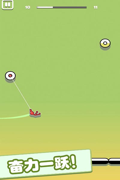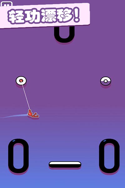 2、按下你的屏幕,用你的抓钩钩住你的火柴人并释放放手,你需要控制好你的抓钩,它是获胜的关键。