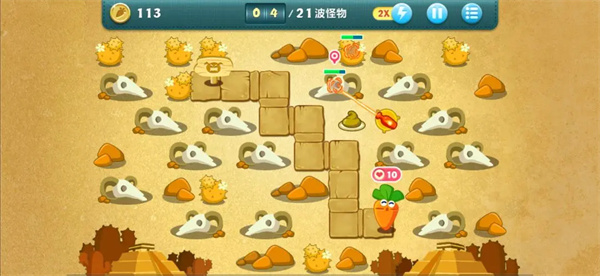 保卫萝卜破解版是一款风靡全球的萌系塔防手游,该版本内置修改菜单,玩家将化身机智的守护者,通过建造各种防御塔来保护可爱的萝卜不被怪物吃掉。游戏采用清新Q版的画风,搭配轻松欢快的背景音乐,为玩家带来既休闲又充满策略性的塔防体验。从森林、沙漠到冰川、太空,丰富多样的主题关卡让每一场防御战都充满新鲜感!