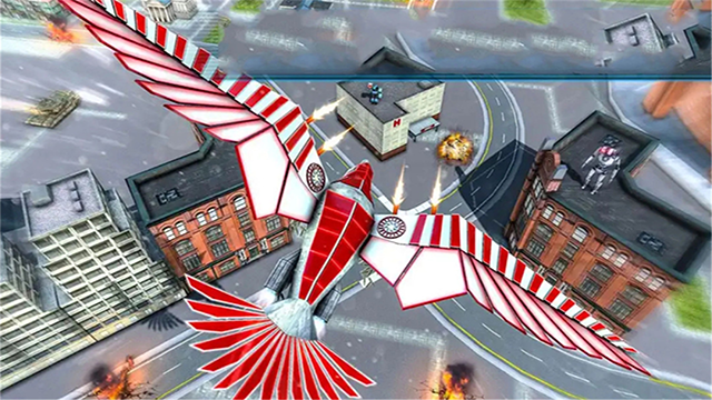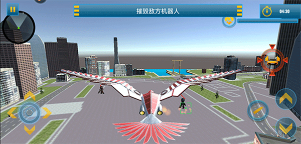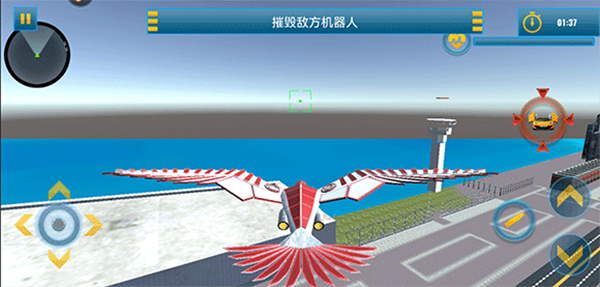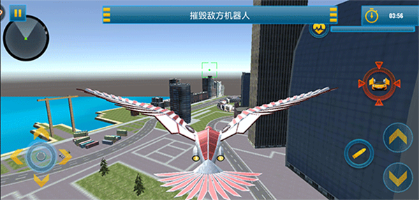 1、进入游戏后,操控机甲鹰移动时,可利用屏幕左侧的虚拟摇杆进行方向调整,而右侧的控制键则负责高度变化,灵活掌握飞行节奏。