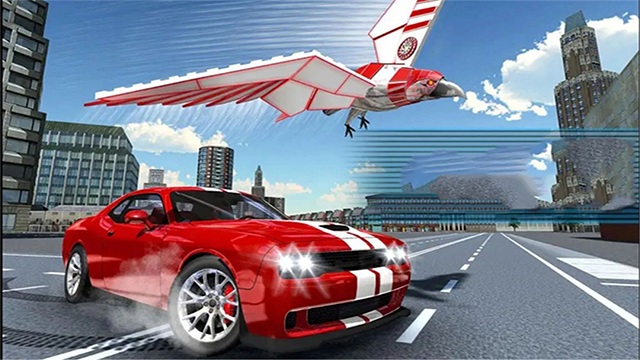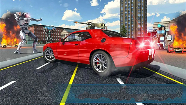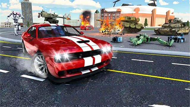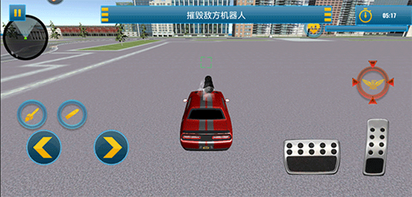 4、除了空中作战,点击屏幕上的汽车图标还能切换至陆地形态,以不同战斗模式灵活应对敌方威胁,展开更具策略性的攻防对决。