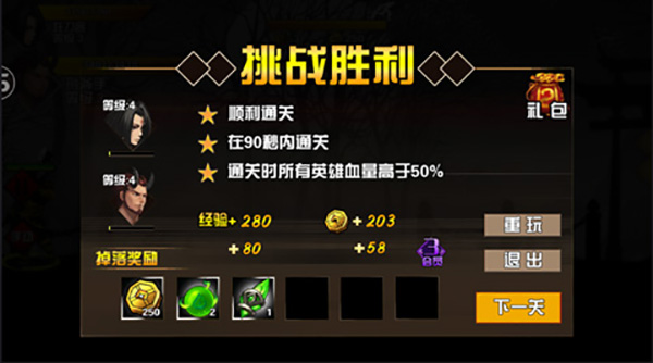 挑战成功后,会有奖励掉落,这些奖励可以打造装备,也可以升级角色