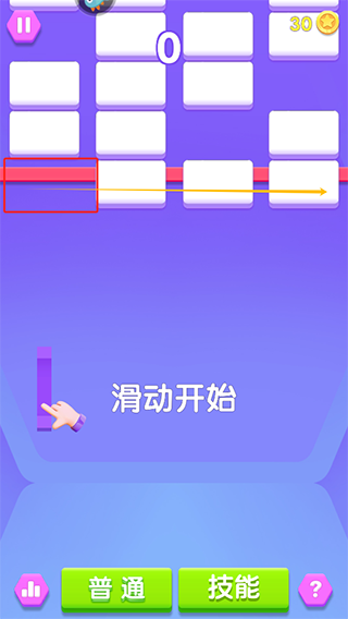3、滑动开始,将方块放置到空缺处,集齐一排就会消除