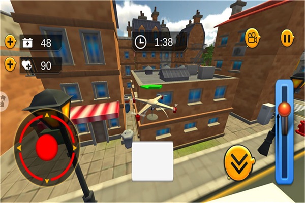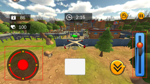 3、通过圆形操控盘进行操控无人机飞行方向,通过右侧拉杆控制飞行高度