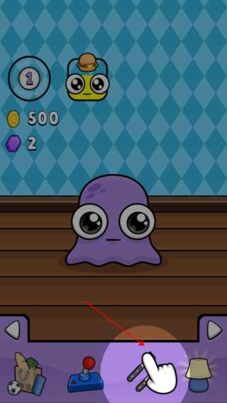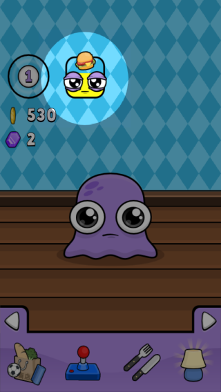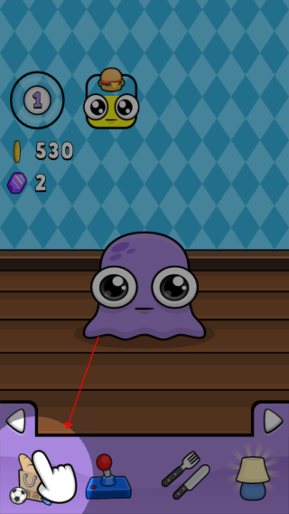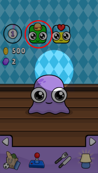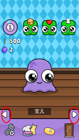 1、进入游戏,上方会呈现宠物的当前状态,如现在我们的小宠物饿了