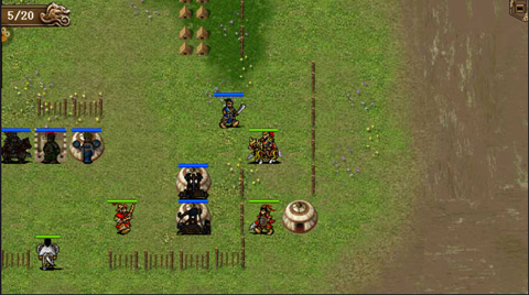 较佳的方案是:首先全军向西,可以引下上方两拳师,然后消灭左路水寇,岳云继续向西到西南岸登陆,可使东门敌军混乱(岳云登陆时,我军其他人必须都还在水里才能触发,北门登陆的方式与此类似),其他人向东御敌,占领兵营后,水上敌人降攻防,岳飞单挑秦桧,敌军全部混乱,想得高分的话,可以把上面5个对话全部触发,通常情况下,回合用的越少,得分也会越高,