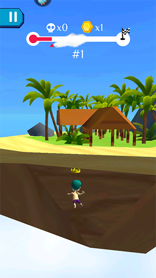 2、点击开始,人物就会开始滑行,通过左滑右滑屏幕控制人物的滑动方向