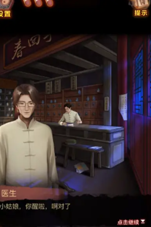 1、剧情衔接之前的第一章,进入祠堂的童百岁差点被坠落的人像给砸到了,点击可以救他。