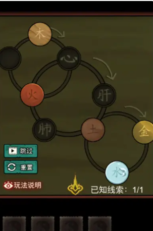 14、用之前的木梯爬到上面,进行关于五行的解密,需要更多的圆块。