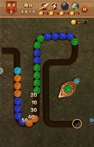 4、 趁彩球到达终点前消除所有的彩球吧!努力获到三颗星!