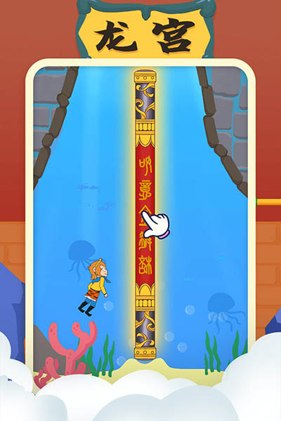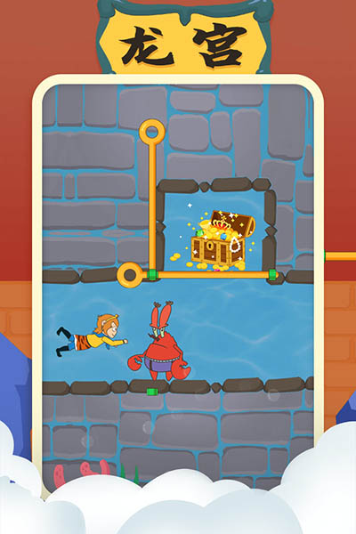 5、第三关拉开竖向的拉杆后,龙虾和孙悟空都会开始移动。