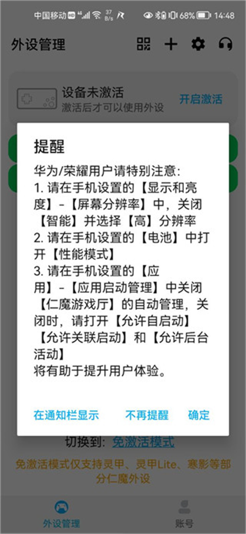 3、点击外设管理,这里需要激活设备,点击开启激活就可以设置;