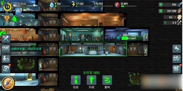 1、见不少玩家说不能移动房间,其实移动房间的按钮在主控室当中,可以点主控室,然后就可以看到下方的按钮中有一个叫做重构的东西,点击重构。