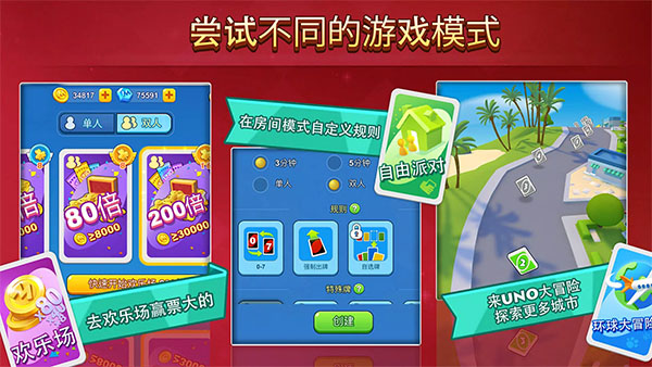 2、原汁原味:完整继承UNO规则,搭配特殊功能卡牌,策略与运气并存。