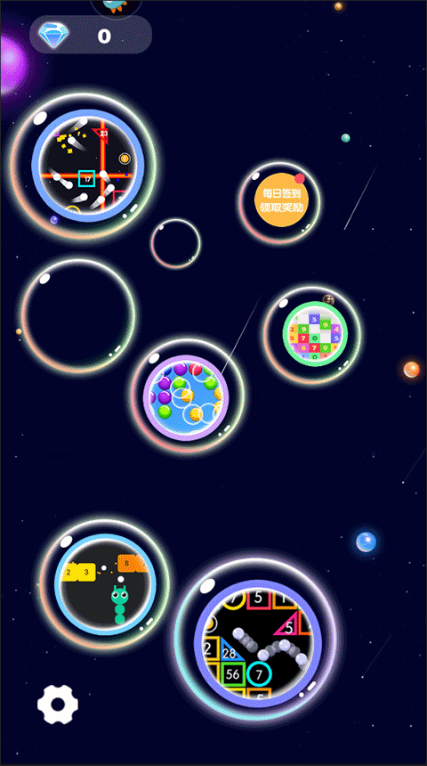 1、运行游戏后,在主界面点击界面中的球体进入具体的游戏;