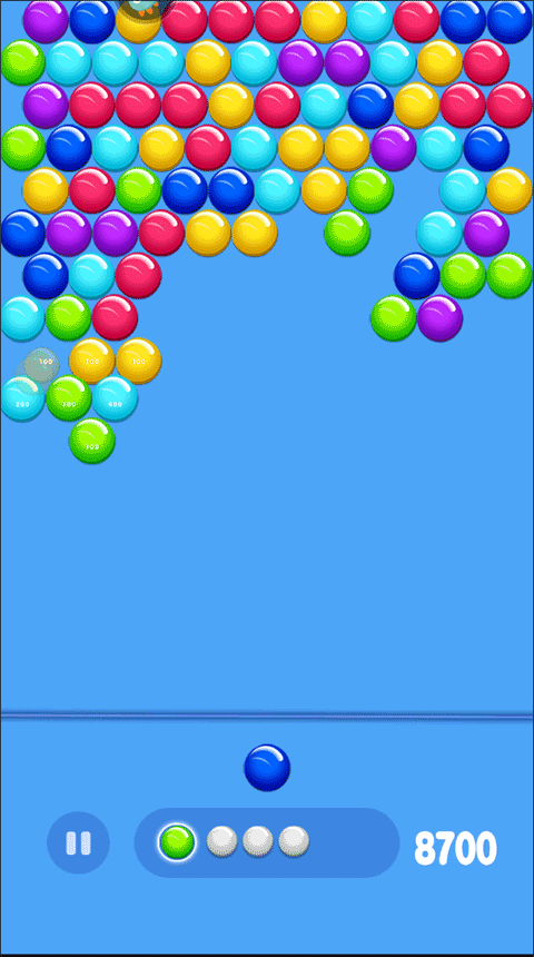 5、对准一个相同颜色的珠子发射,当有三个一样颜色的珠子串联起来后即可获得消融;