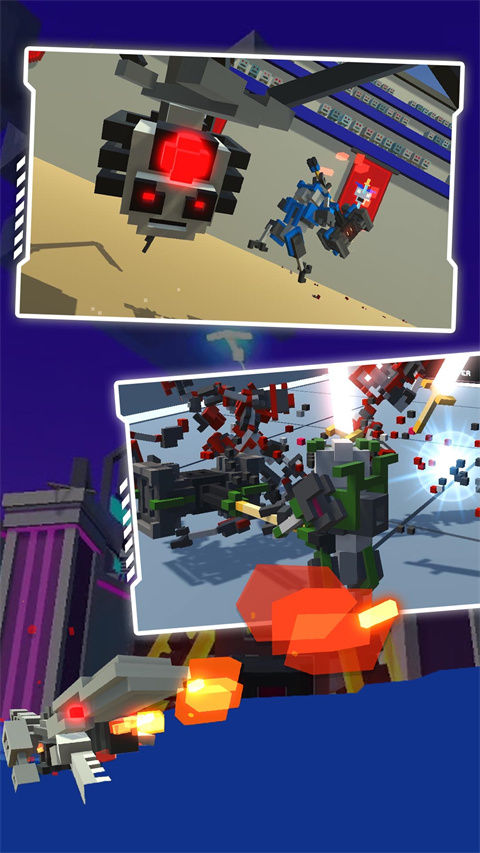 3、竞技场挑战:单人对战AI或多人联机PVP,体验高强度机甲对决。