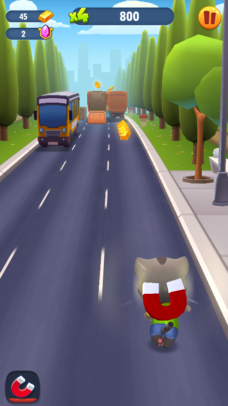 游戏的玩法就是比较传统的竖屏3D跑酷游戏,可以在游戏当中操控汤姆猫向前奔跑,躲避来自于城市街道的各类障碍物。并且在跑酷的过程中还需要尽可能的多筹集金块。