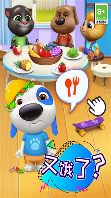 汤姆猫家族全员登场,每个角色都保留经典语音和表情,还能进行换装、喂食等亲密互动