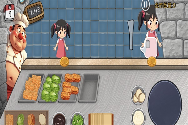 6、完成初步的煎饼后,可以增加配料,点击食材托盘将食材放置;