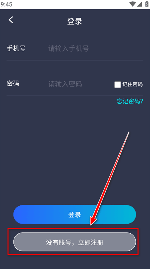 2、进入登录界面后,新用户就点击底部的“没有账号,立即注册”;